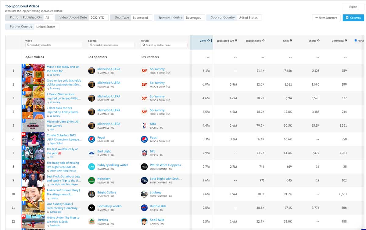 Branded Videos Q1 – Q3 2022 With 2.6K+ branded beverage videos published on Facebook from Q1 – Q3 in 2022, the SoYummy x ULTRA videos were the top 4 most viewed pieces of content.
